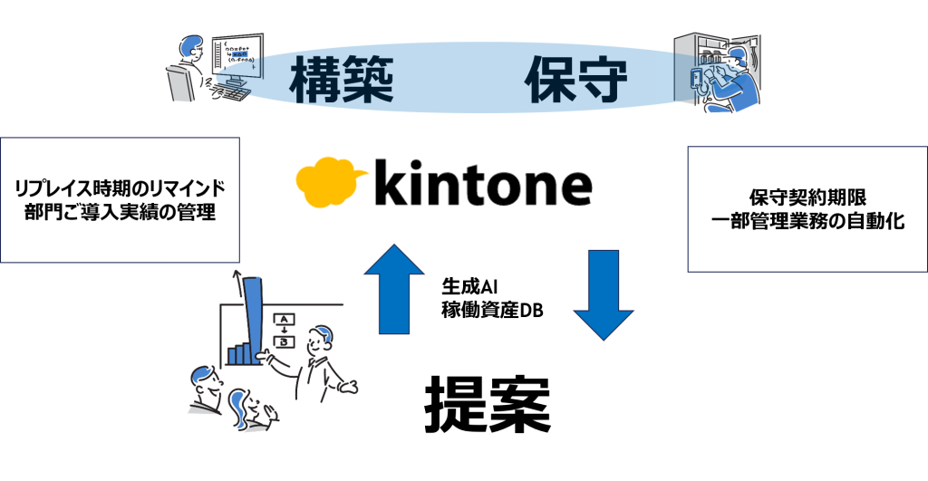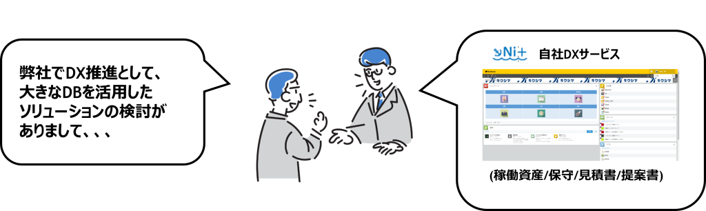 経営ビジョン実現に向けて「DX推進プロジェクトチーム」を立ち上げ、社内に蓄積された膨大な情報資産を活用できる体制の構築を進めています。社内データの一元管理と業務の自動化により、迅速で的確な顧客対応を実現し、付加価値の高い提案力を強化します。
