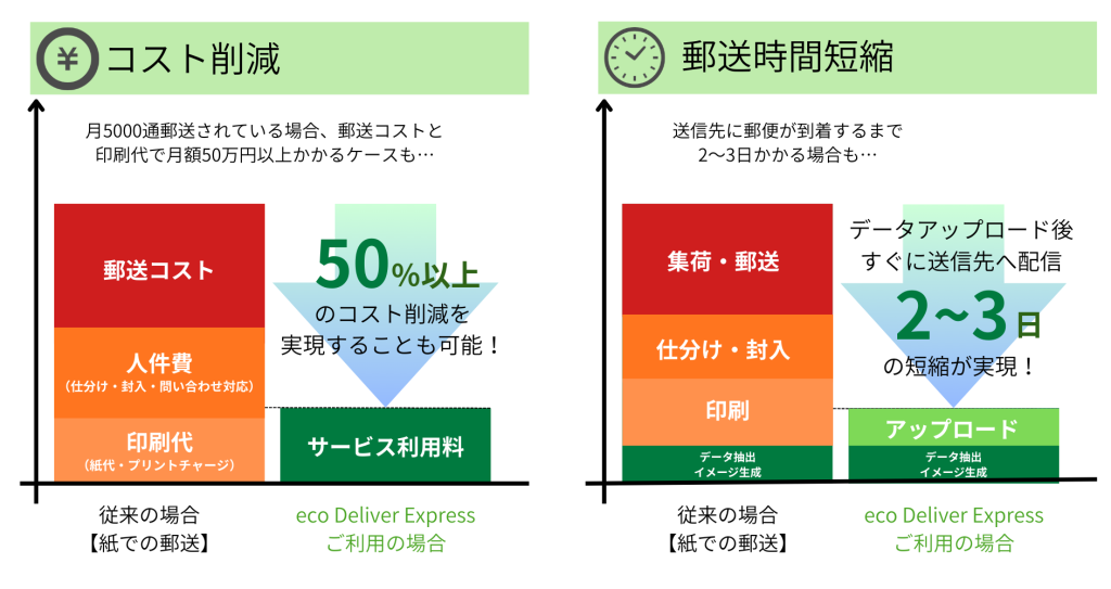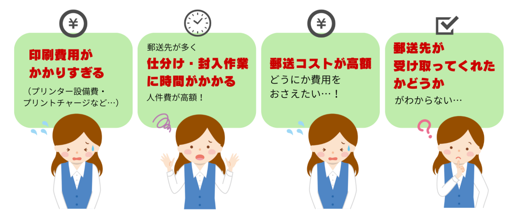 印刷および郵送にかかるコスト・手間の削減はもちろんのこと、